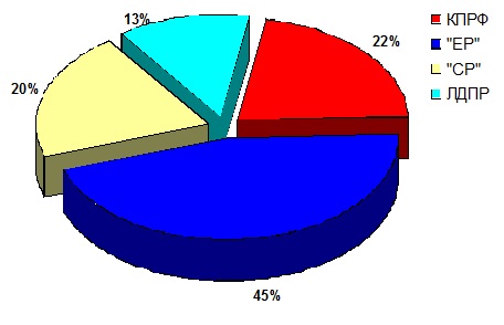 Таким образом, во вторую декаду апреля впервые за долгое время наметилось относительное выравнивание времени парламентских партий в телеэфире. КПРФ получила 22% времени, т.е. почти четверть всего телеэфира.