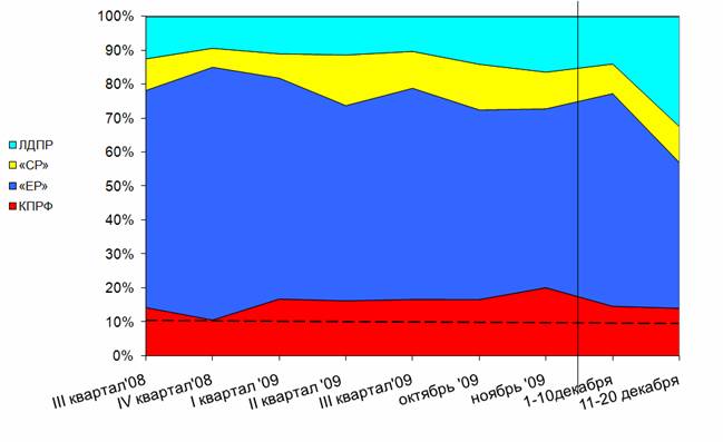 Динамика суммарного партийного эфира, 28 апреля 2008 г. – 20 декабря 2009 г.