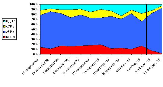 Динамика суммарного партийного эфира, июль 2008 г. – 20 декабря 2010 г.