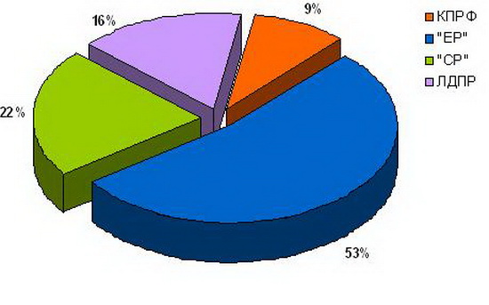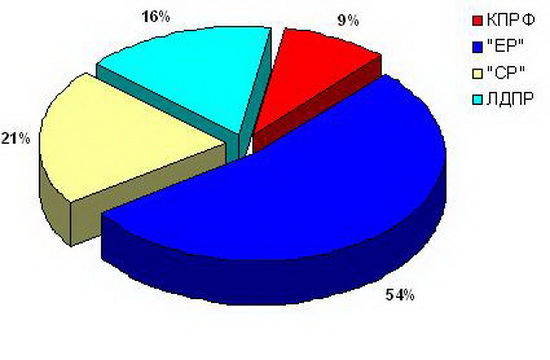 «Единая Россия» получила 39 минут 54 секунды, что составило 54%. На долю ЛДПР пришлось 16% эфирного времени, «Справедливую Россию» показывали 21% от суммарной продолжительности политических телепередач.