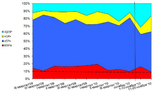Динамика суммарного партийного эфира, июль 2008 г. – 20 ноября 2010 г.