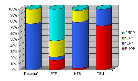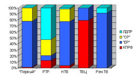| Телеканал | КПРФ | «ЕР» | «СР» | ЛДПР | |