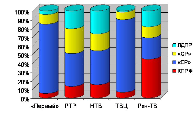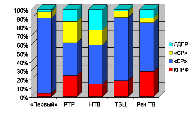 | Телеканал | КПРФ | «ЕР» | «СР» | ЛДПР | |