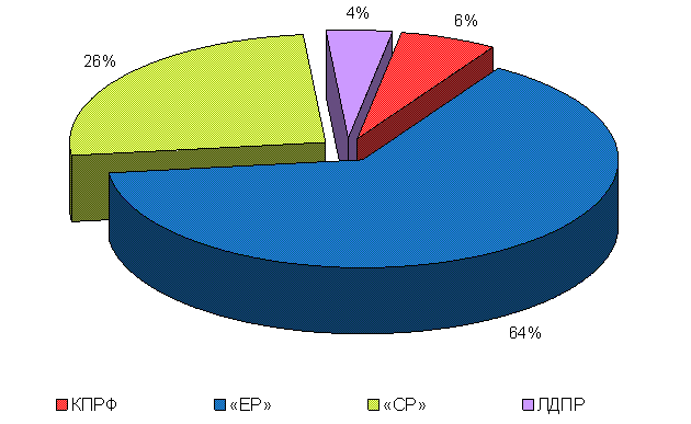 Что касается синхрона (прямой речи) партийцев, то его структура аналогична: единороссам было предоставлено 64% суммарного времени, либерал-демократам – 4%, справороссам – 26%. Коммунистам досталось 6 минут 59 секунд, или 6%, что в 11 раз меньше чем представителям «ЕР» и в 4 раза меньше, чем ЛДПР (График 2).