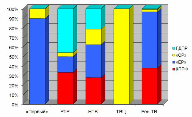 | Телеканал | КПРФ | «ЕР» | «СР» | ЛДПР | |
