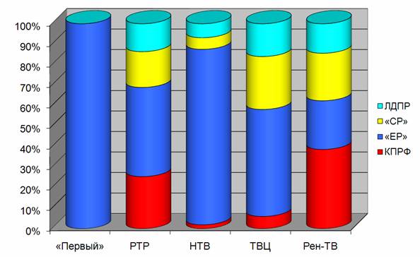 | Телеканал | КПРФ | «ЕР» | «СР» | ЛДПР | |
