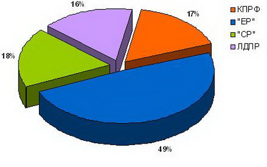Что касается синхрона (прямой речи) партийцев, то его структура аналогична: единороссам было предоставлено 49% суммарного времени, либерал-демократам – 16%, справороссам – 18%. Коммунистам досталось 21 минута 57 секунд, или 17%, что почти в полтора раза меньше, чем представителям «ЕР» и на 2 мин 22 сек меньше, чем ЛДПР (График 2).