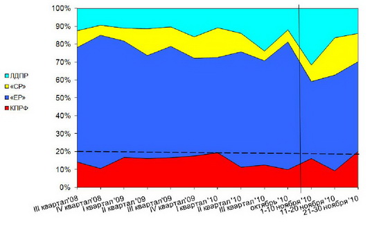 Динамика суммарного партийного эфира, июль 2008 г. – 20 ноября 2010 г.