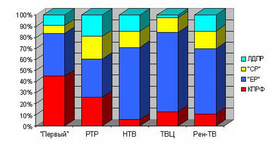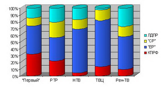 | Телеканал | КПРФ | «ЕР» | «СР» | ЛДПР | |