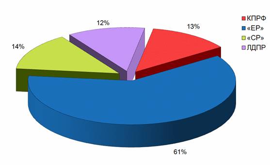 «Единая Россия» получила 1 час 54 минуты 29 секунд, что составило 65%. На долю ЛДПР пришлось 14% эфирного времени, «Справедливую Россию» показывали 10% от суммарной продолжительности политических телепередач.