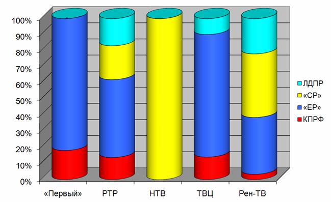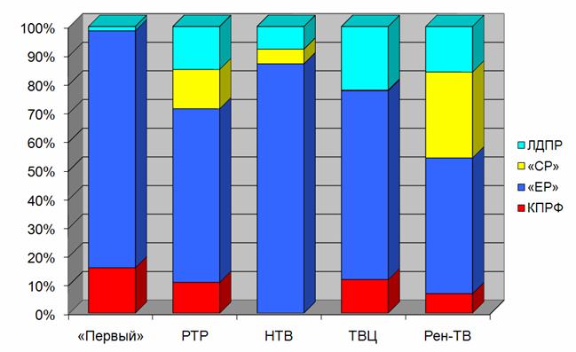 | Телеканал | КПРФ | «ЕР» | «СР» | ЛДПР | |