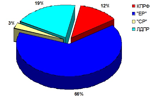 «Единая Россия» получила 2 часа 27 минут 41 секунду, что составило 66%. На долю ЛДПР пришлось 19% эфирного времени, «Справедливую Россию» показывали 3% от суммарной продолжительности политических телепередач.