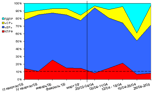 Динамика суммарного партийного эфира, 28 апреля 2008 г. – 2 мая 2009 г.