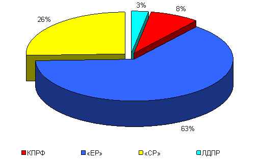 «Единая Россия» получила 1 час 11 минут 45 секунд, что составило 63%. На долю ЛДПР пришлось 3% эфирного времени, «Справедливую Россию» показывали 26% от суммарной продолжительности политических телепередач.