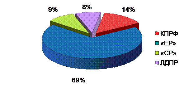 Что касается синхрона (прямой речи) партийцев, то его структура аналогична: единороссам было предоставлено 69% суммарного времени, либерал-демократам – 8%, справороссам – 9%. Коммунистам досталось 13 минут 26 секунд, или 19%, что в пять раз меньше чем представителям «ЕР» (График 2).