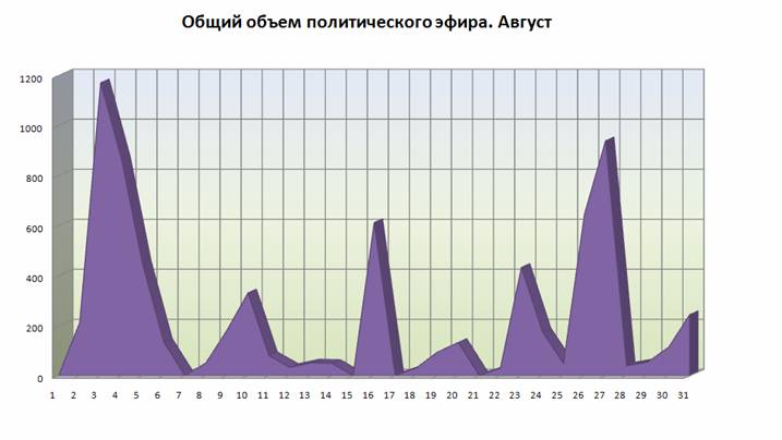 Объем политического телеэфира значительно различался по продолжительности в разные дни августа (График 1).