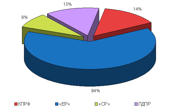 «Единая Россия» получила 12 часов 7 минут 1 секунду, что составило 65%. На долю ЛДПР пришлось 11% эфирного времени, «Справедливую Россию» показывали 7% от суммарной продолжительности политических телепередач.