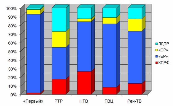 | Телеканал | КПРФ | «ЕР» | «СР» | ЛДПР | |