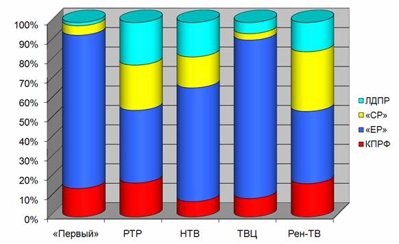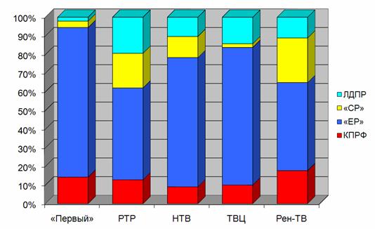 | Телеканал | КПРФ | «ЕР» | «СР» | ЛДПР | |