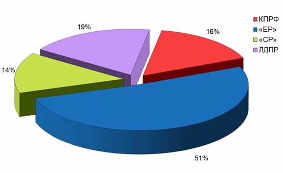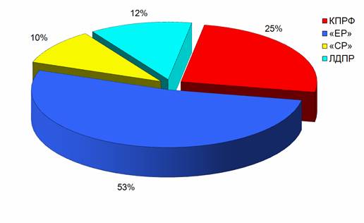 «Единая Россия» получила 4 часа 6 минут 4 секунды, что составило 53%. На долю ЛДПР пришлось 12% эфирного времени, «Справедливую Россию» показывали 10% от суммарной продолжительности политических телепередач.