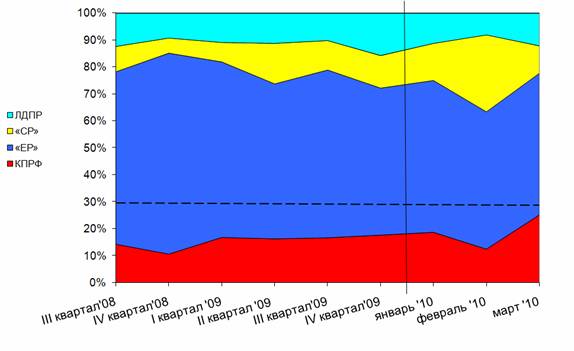 В течение июля 2008 г. – марта 2010 г. структура партийного телеэфира менялась следующим образом (График 3):