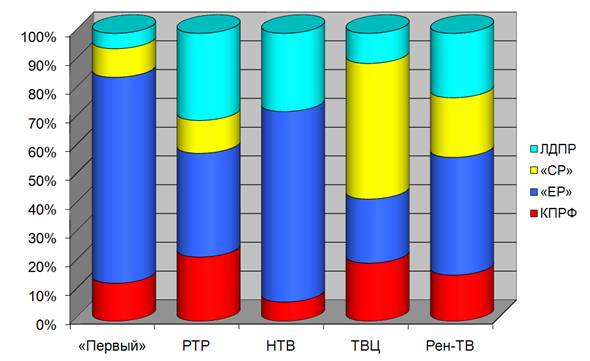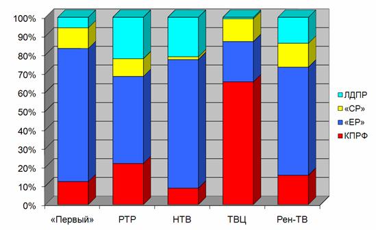 | Телеканал | КПРФ | «ЕР» | «СР» | ЛДПР | |