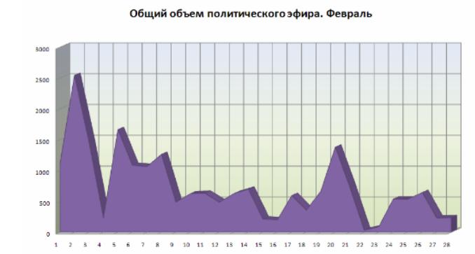Объем политического телеэфира значительно различался по продолжительности в разные дни февраля (График 1).