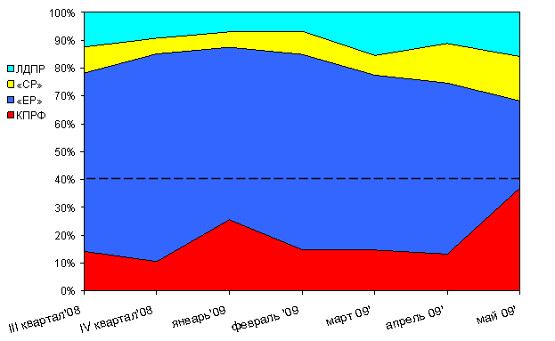В течение апреля 2008 г. – мая 2009 г. структура партийного телеэфира менялась следующим образом (График 3):