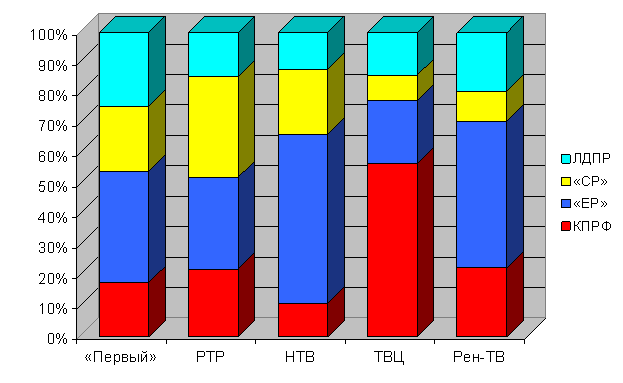 | Телеканал | КПРФ | «ЕР» | «СР» | ЛДПР | |