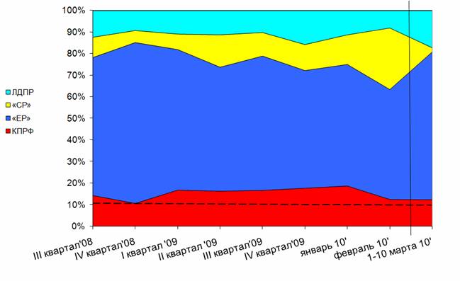 Структура суммарного партийного синхрона, 1 января – 10 марта 2010 г.