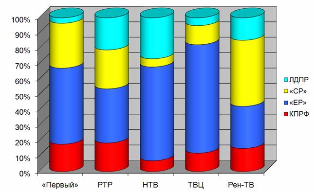 | Телеканал | КПРФ | «ЕР» | «СР» | ЛДПР | |