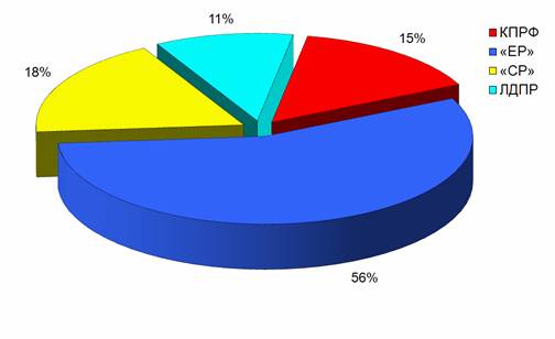 «Единая Россия» получила 7 часов 31 минуту 5 секунд, что составило 56%. На долю ЛДПР пришлось 11% эфирного времени, «Справедливую Россию» показывали 18% от суммарной продолжительности политических телепередач.