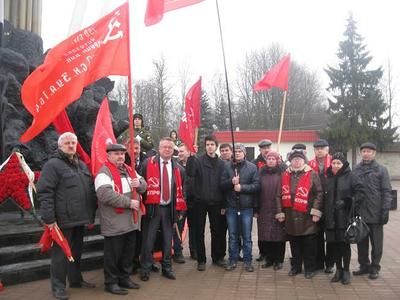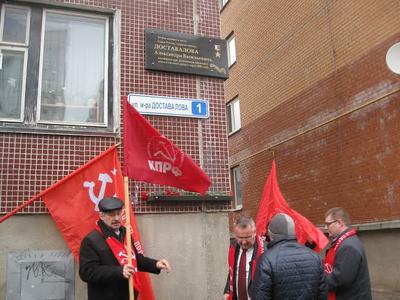 Делегация Псковского ГК КПРФ развернула красные флаги над автомашинами и проехала по городу Воинской Славы Пскову. Она возложила живые цветы и венки к памятной доске Героя России Александра Доставалова на улице его имени.