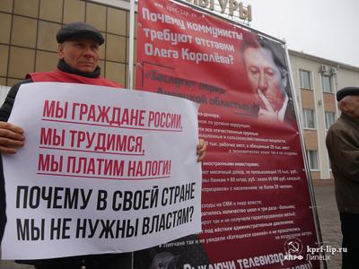 18 марта 2017 года в г. Липецке состоялся митинг протеста против ухудшения социально-экономического положения населения, антинародной политики действующей власти. Одним из главных лозунгов митинга стал призыв «Отправь «Петровича» в отставку!». Речь шла о главе администрации Липецкой области Олеге Петровиче Королёве. На акцию собралось более пятисот коммунистов, комсомольцев и сторонников КПРФ.