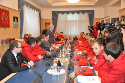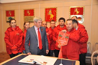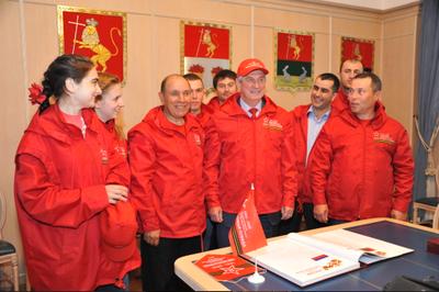 В ходе торжественной встречи участникам автопробега были вручены памятные подарки и грамоты. Они в свою очередь передали депутатам-коммунистам сувениры с символикой акции. Первый заместитель Председателя ЦК КПРФ И.И. Мельников оставил запись в книге почетных участников автопробега.
