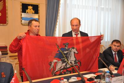 От имени коммунистов столицы и фракции КПРФ в Московской городской Думе Валерий Федорович вручил участникам автопробега флаг города Москвы. «Мы все родом из Советского Союза!» - так завершил свое выступление В.Ф. Рашкин.