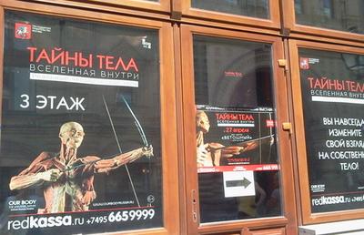 В Москве, в двух шагах от Кремля открылась (и закрываться не собирается) выставка под названием «Тайны тела», где в виде экспонатов заявлены «реальные человеческие тела».