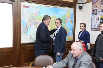 В завершение заседания активистам штаба В.И. Кашин вручил памятные медали ЦК КПРФ «60 лет космонавтике».