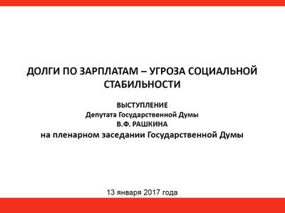 Хочу снова обратить Ваше внимание на острую, актуальную для нашей страны проблему – проблему долгов по зарплатам. Подчеркиваю – это не какая-то заштатная ситуация, которая может не волновать умы федеральных политиков. Нет, речь идет о проблеме государственной важности, которая создает все возрастающую социальную напряженность.
