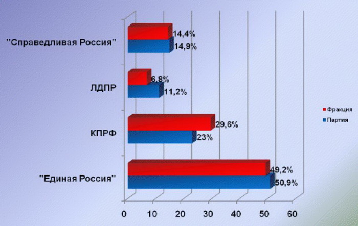 | Фракция "Единая Россия" | 1246 | 49,2 | 1073 | 50,9 | 1319 | 42,7 |
