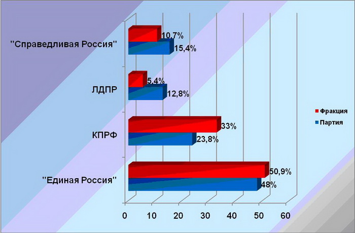 | Фракция "Единая Россия" | 1073 | 50,9 | 947 | 53,6 | 1259 | 47,3 | 2731 | 50,2 | 3254 | 46,3 | ||