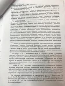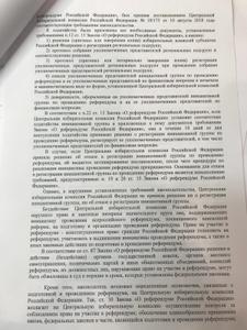 Несмотря на надлежащую полноту представленных в ЦИК инициативной группой документов, ЦИК не отреагировала никак! Тем самым нарушив действующее законодательство. Что в свою очередь и повлекло за собой затягивание сроков и как итог – отказ в проведении референдума! Не были лишены регистрации группы, существующие фактически только на бумаге, тем самым лишив возможности граждан многих регионов права на референдум.