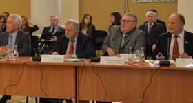 На фото: Лидеры думских фракций на форуме "Открытая трибуна"