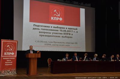 Секретарь ЦК КПРФ С.Обухов доложил о подготовке КПРФ к участию в региональных выборах в Единый день голосования 10 сентября 2017 года и предстоящей избирательной кампании по выборам президента РФ.