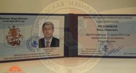 Московская городская избирательная комиссия назвала первого кандидата в мэры Москвы. Им стал И.И. Мельников. 11 июля 2013 г. в торжественной обстановке претенденту на пост мэра было вручено соответствующее удостоверение. Таким образом ,представитель КПРФ И.И.Мельников стал первым зарегистрированным кандидатом. И.И.Мельников-1-й заместитель председателя ЦК КПРФ,1-й вицеспикер ГД РФ и первый зарегистрированный кандидат на пост мэра Москвы.