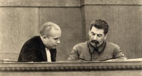 Хрущев сделал еще шаг назад, спрятавшись от Сталина за трибуну.