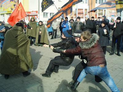 В выступлениях многих ораторов звучала тема трагических событий на Украине. Фактически там идёт прямая агрессия Запада, подобная интервенции 1612 или 1918 года, при поддержке местных антирусских сил, подрывающих триединство русского народа и славянское братство. Член городского комитета КПРФ Анатолий Обухов зачитал проект резолюции, осуждающей действия бандеровских бандитов и их западных покровителей.