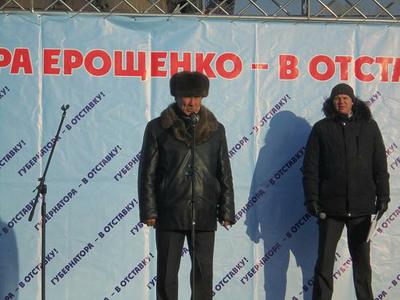 1 декабря в Иркутске у памятника Александру III прошёл митинг под лозунгом «Губернатора Ерощенко – в отставку!». В качестве основных организаторов выступил ряд иркутских строительных компаний, но в митинге приняли участие и представители оппозиции, прежде всего КПРФ.