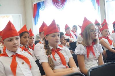 По решению совета дружины здесь же, на торжественной линейке, в почётные пионеры принимаются дорогие гости праздника Сергей Левченко и Василий Овсянников. Народный артист РФ на это отреагировал мгновенно и верно: он призвал всю дружину хором спеть знаменитую пионерскую песню 30-х годов прошлого века «Взвейтесь кострами, синие ночи…!» И дружина подхватила!