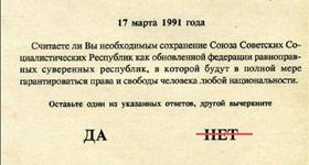 17 марта 1991 года в СССР прошел всесоюзный референдум. Гражданам предлагалось ответить на вопрос «считаете ли Вы необходимым сохранение Союза Советских Социалистических Республик как обновленной федерации равноправных суверенных республик, в которой будут в полной мере гарантироваться права и свободы человека любой национальности?»